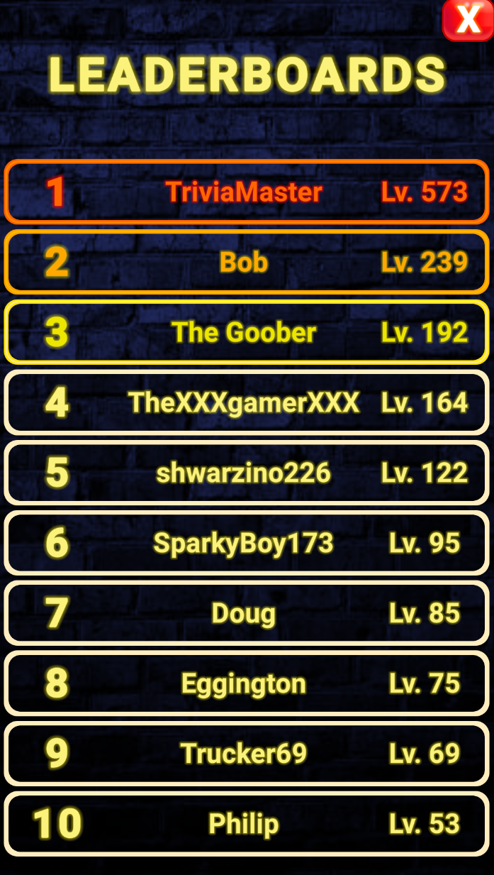 There is an online leaderboard that shows the top 10 Players in THE GAME!!!